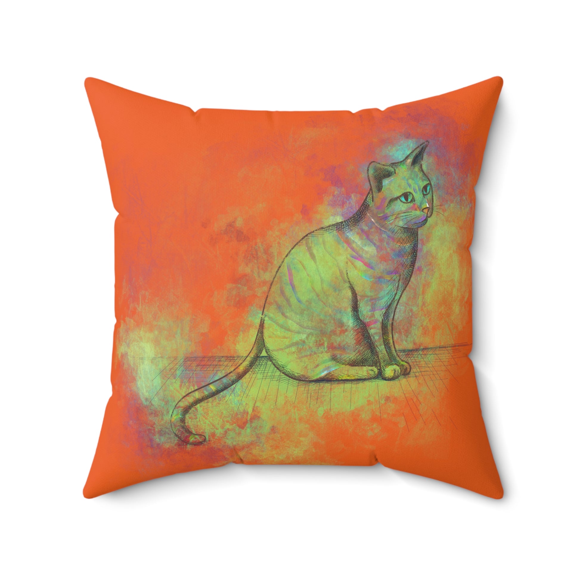 Spun Polyester Square Pillow, Model "Pishi" Orange