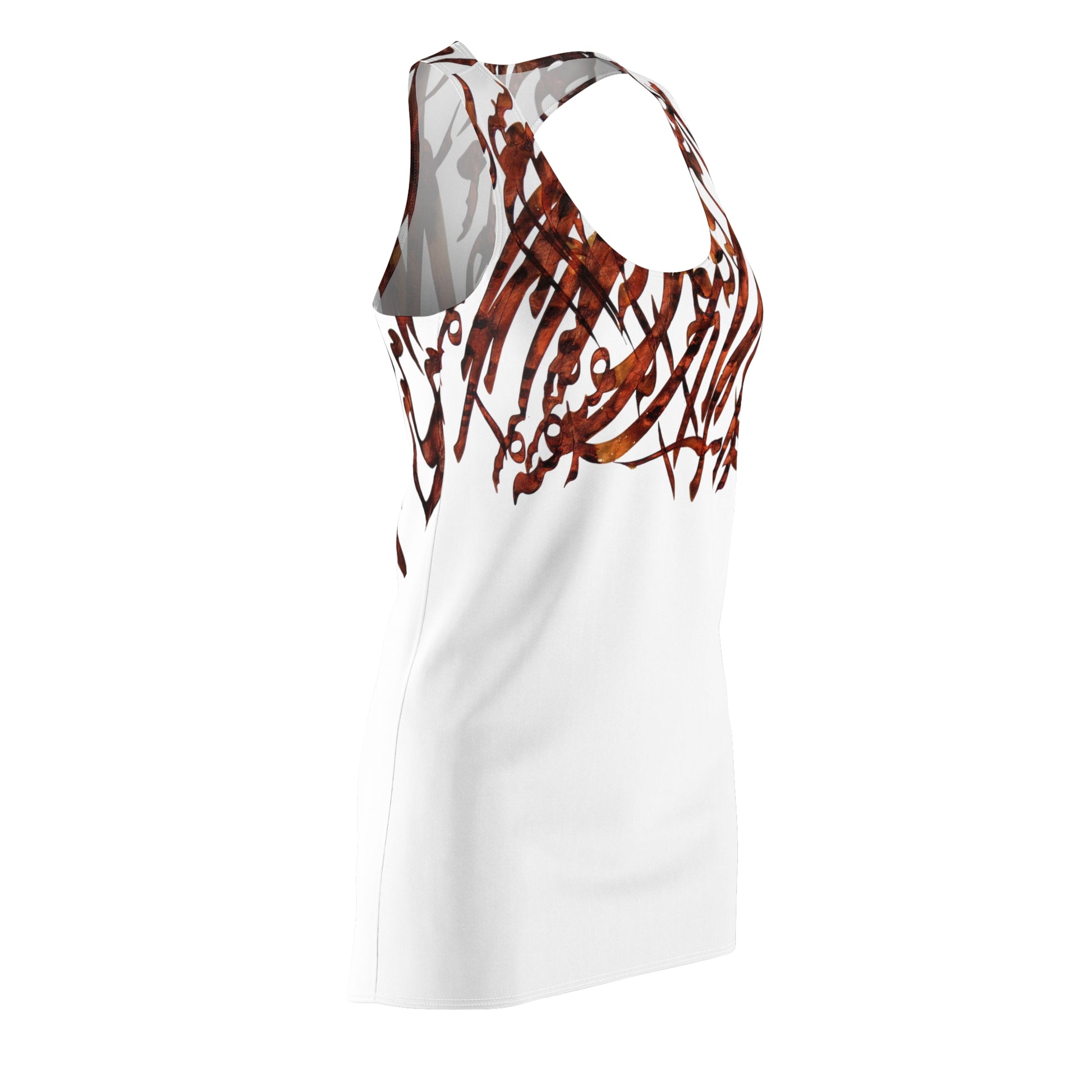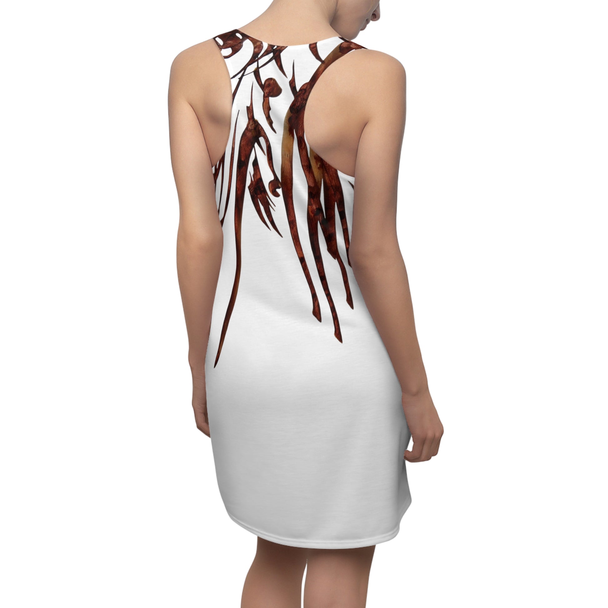 This high-quality AOP racerback dress is made from 100% polyester and features a light, airy fabric that is perfect for warm weather. The dress is also incredibly comfortable, thanks to its relaxed fit and soft, breathable fabric.